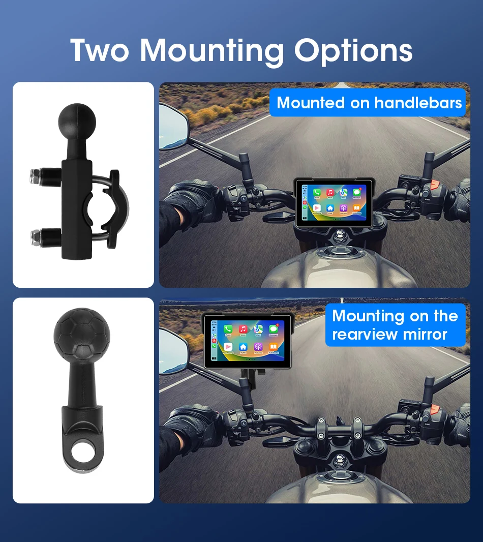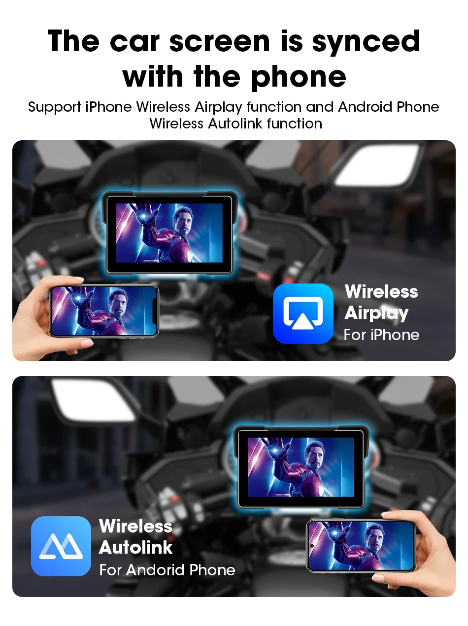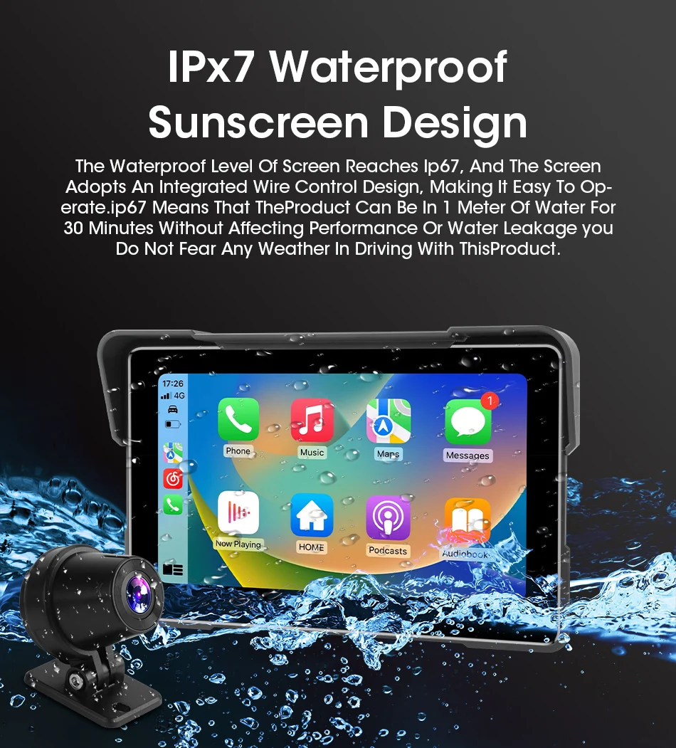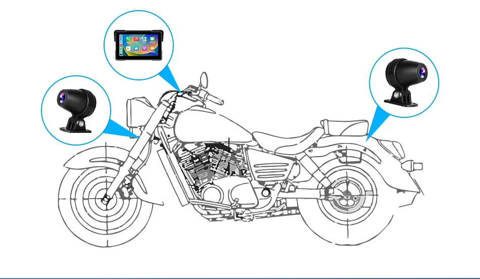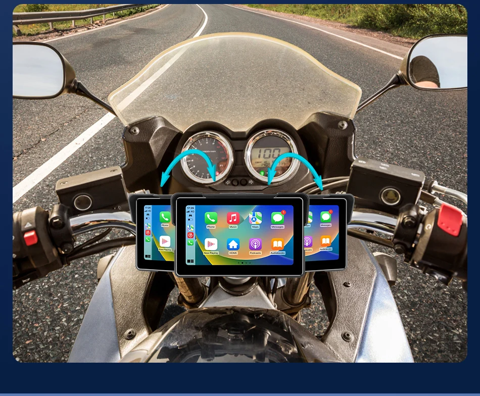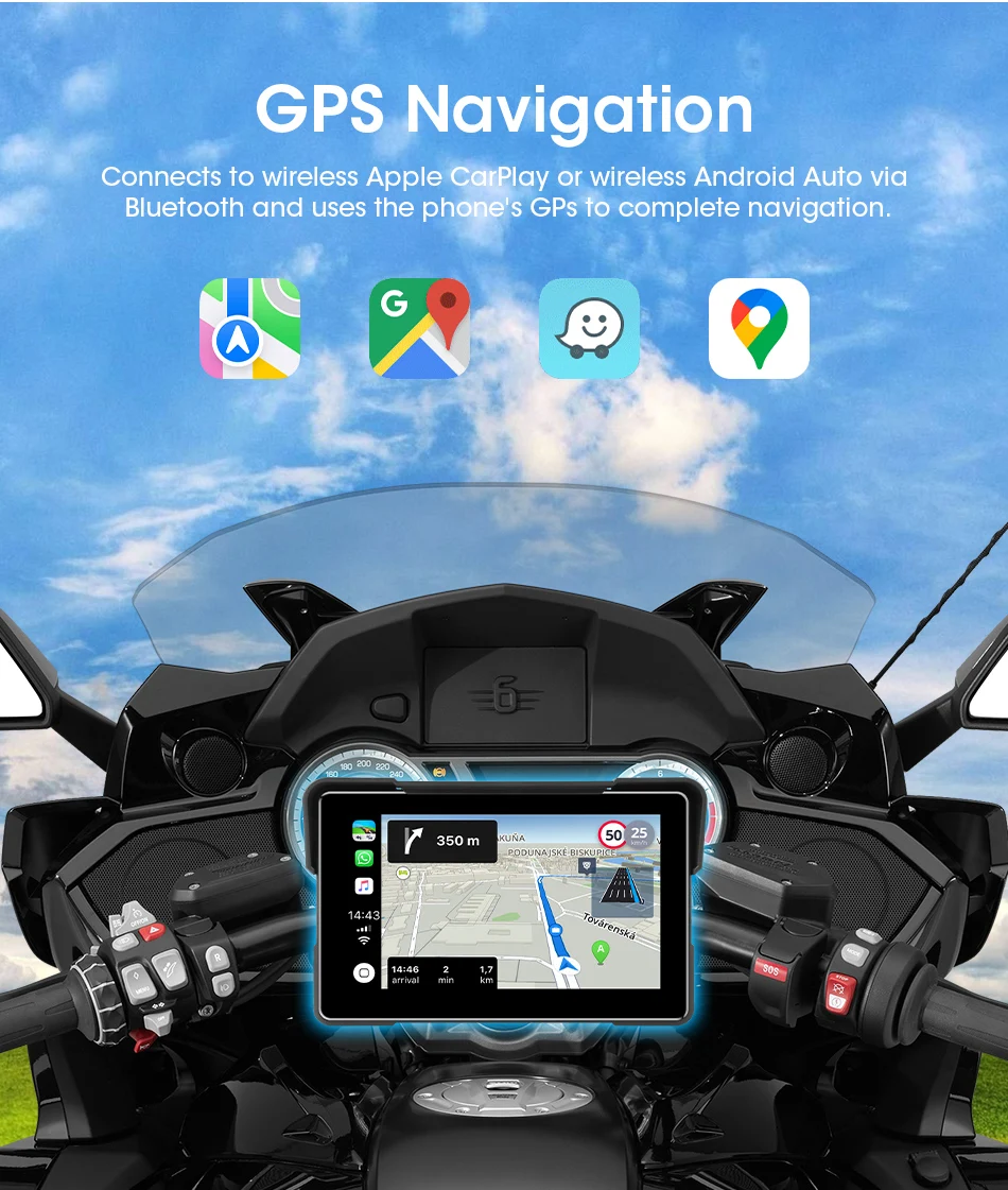 7-inch 1080P Motorcycle DVR or Player Navigation GPS Wireless Carplay Android Auto Screen With Moto TPMS External Sensor