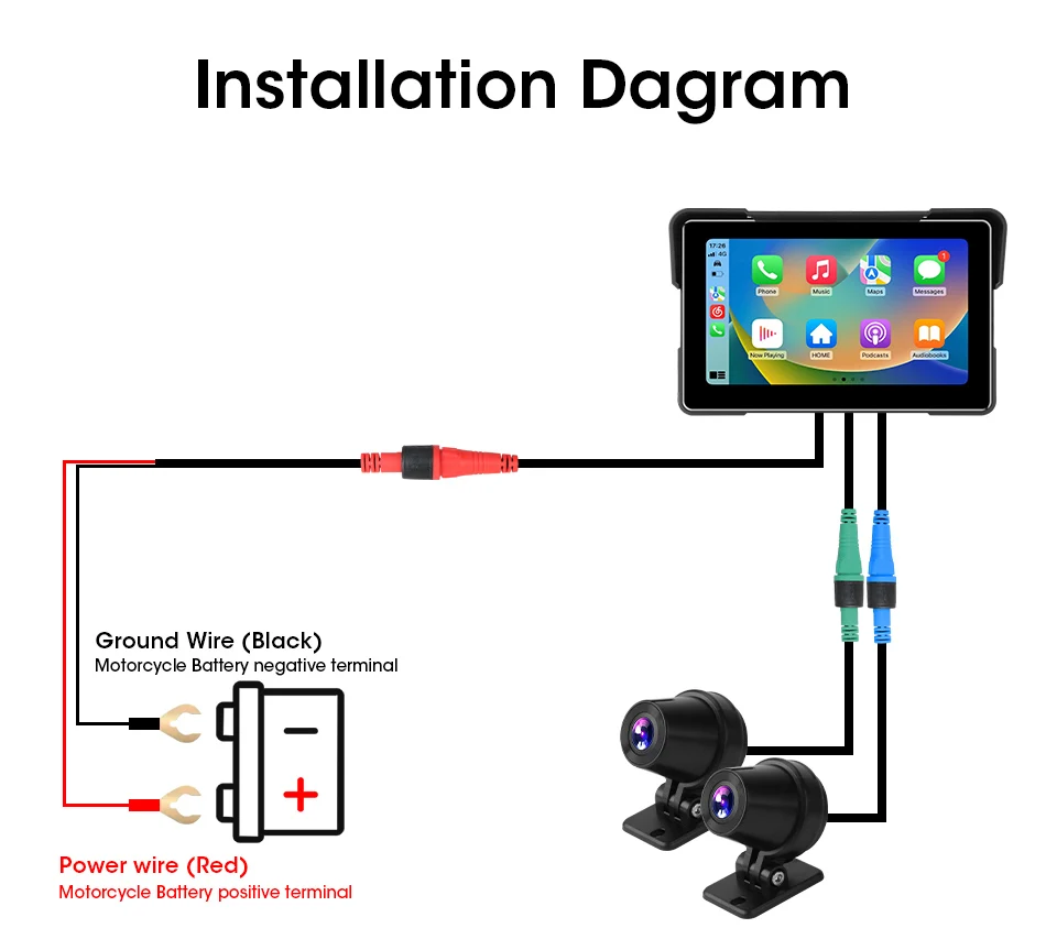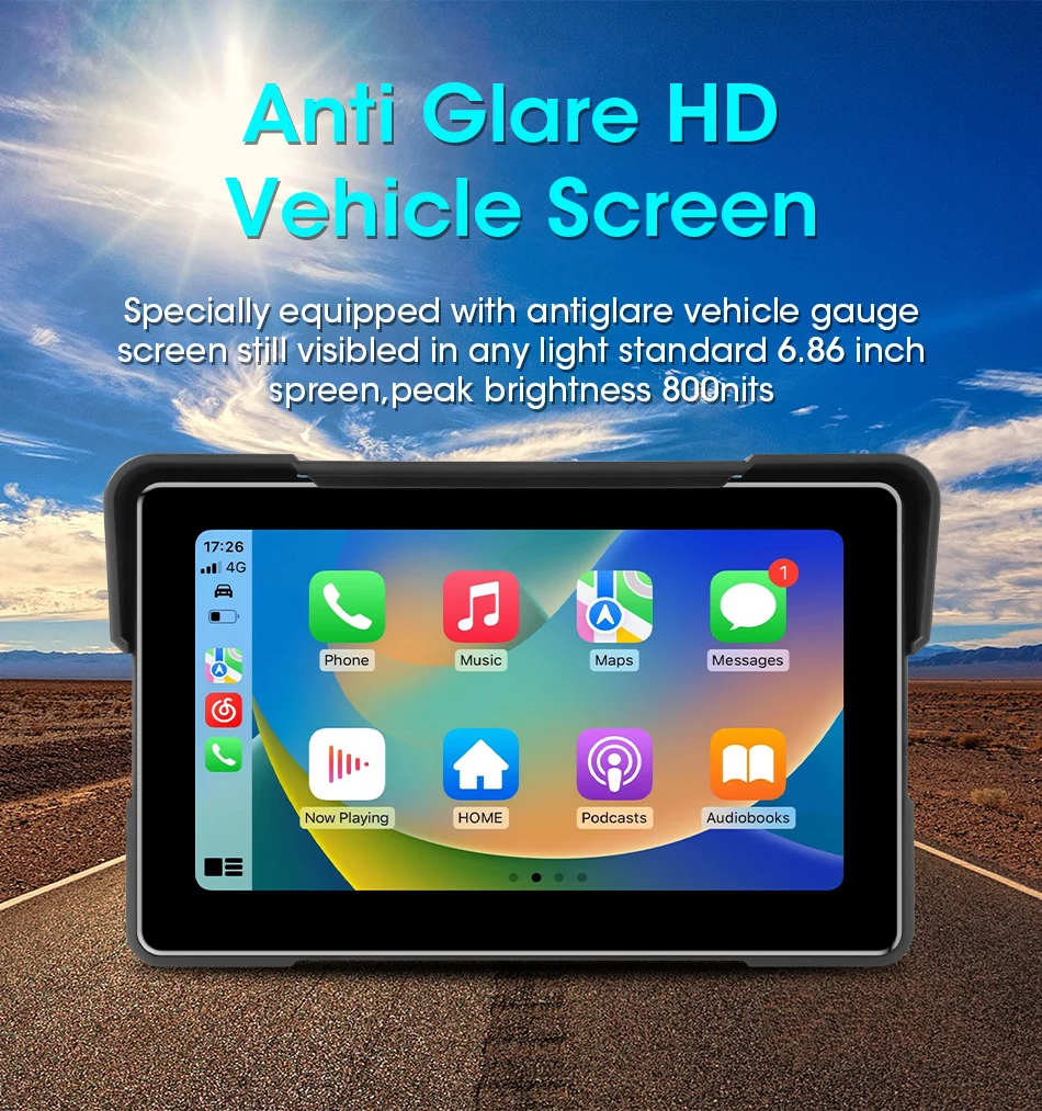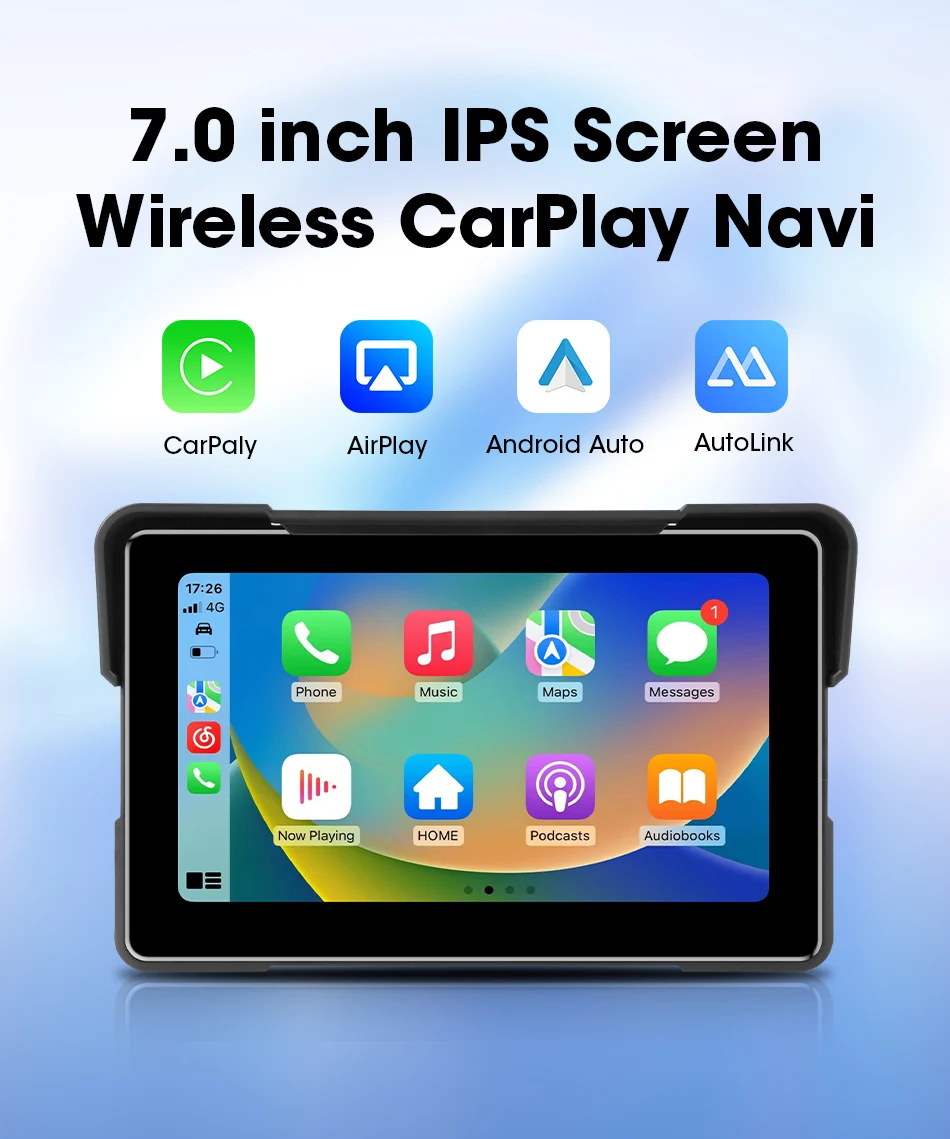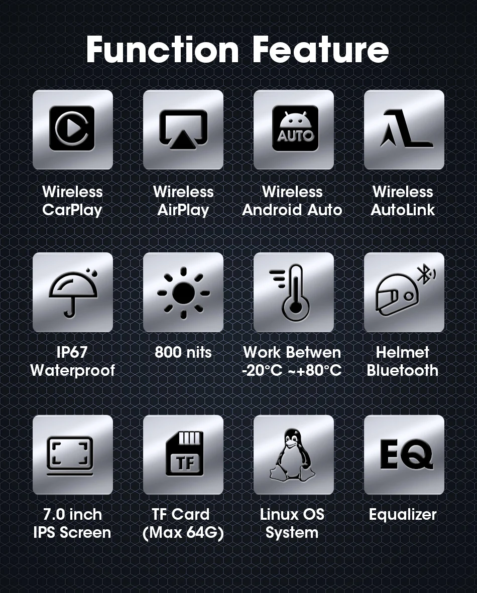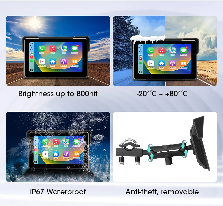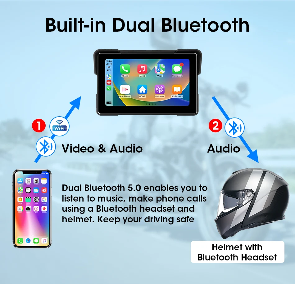7-inch 1080P Motorcycle DVR or Player Navigation GPS Wireless Carplay Android Auto Screen With Moto TPMS External Sensor